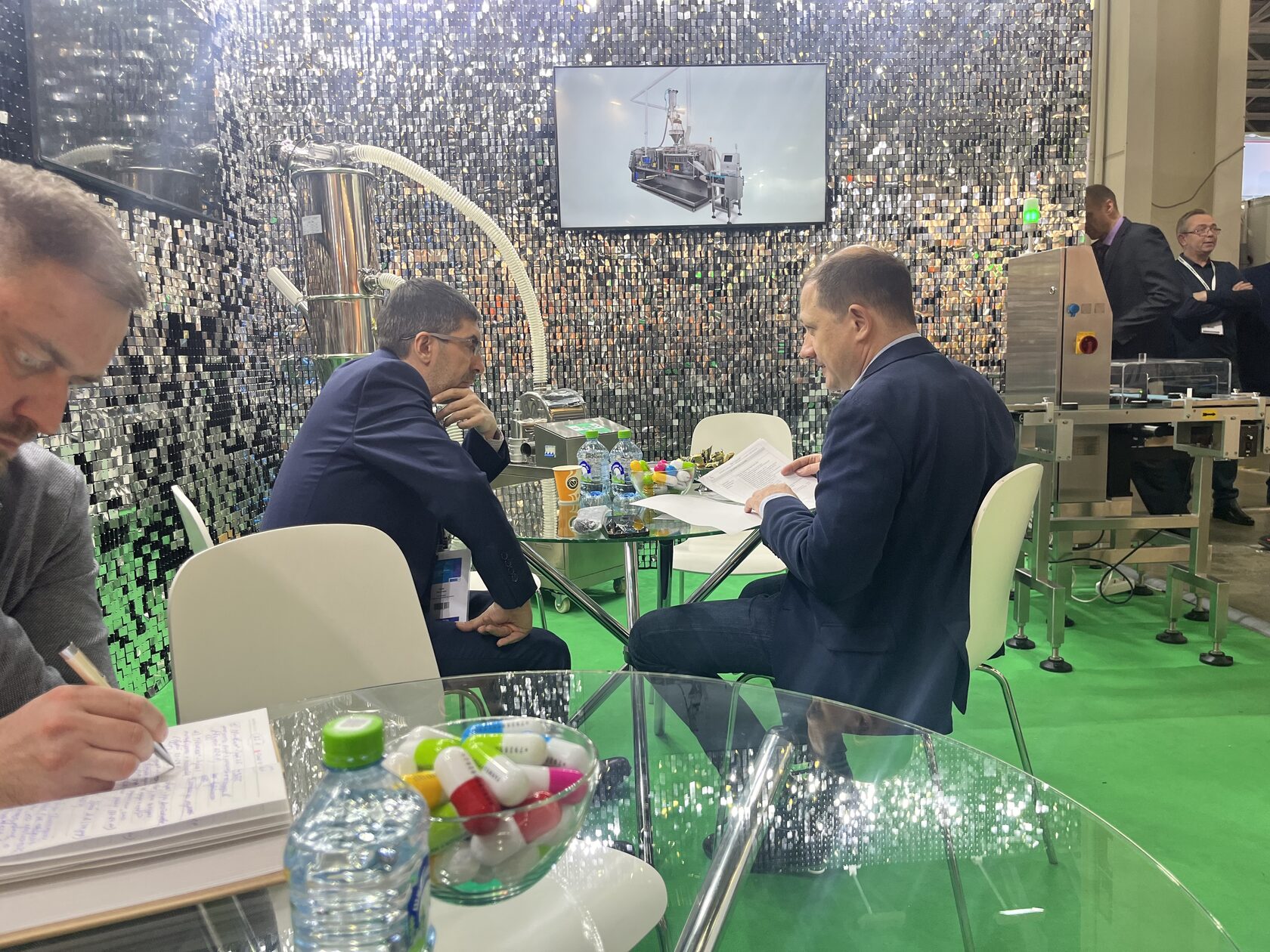 Фотографии с первого дня международной выставки PHARMTECH & INGREDIENTS 2023 в Москве: стенд «Ист Индастриал Сэппорт», встречи и экспозиция.